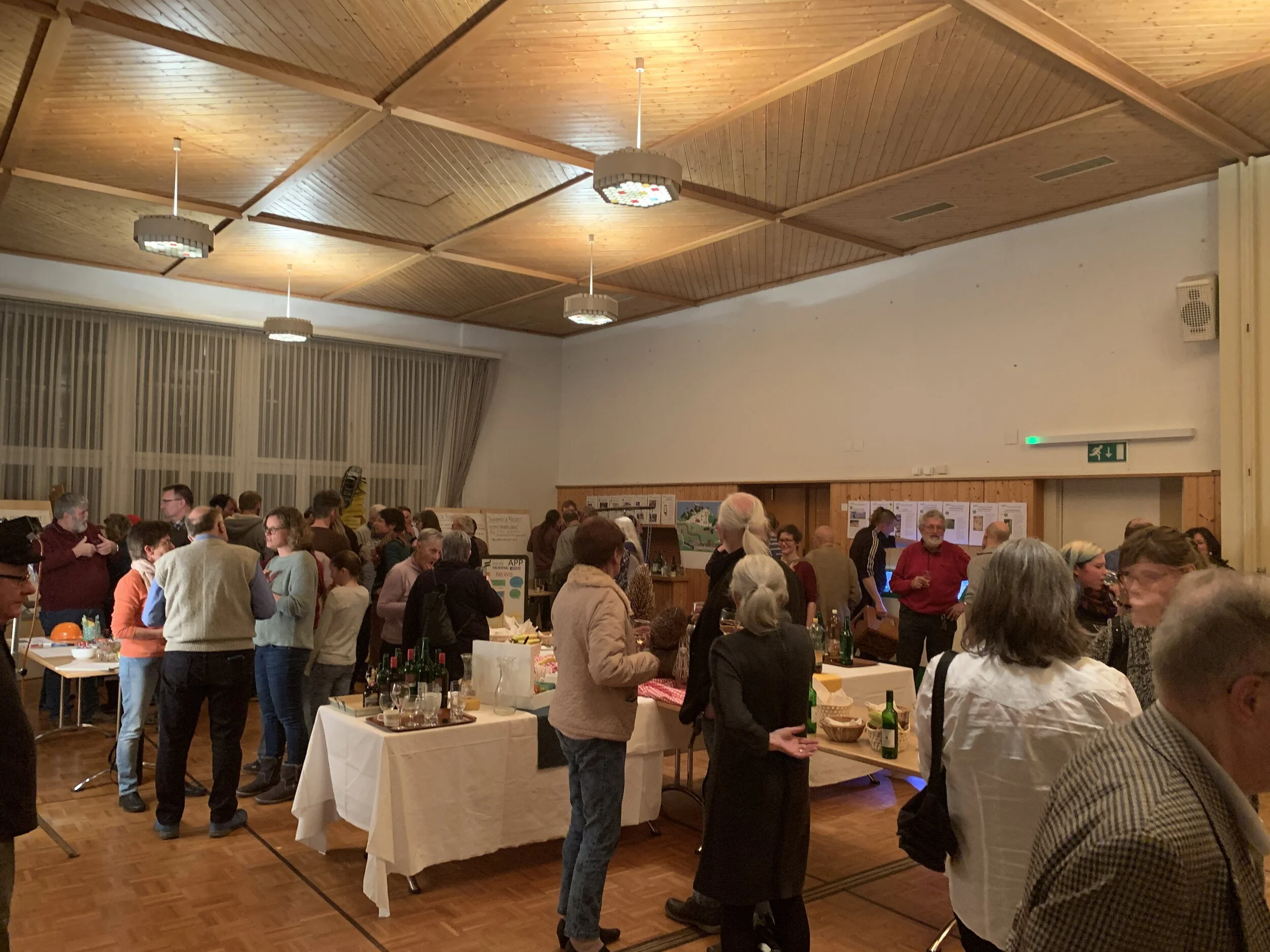 Nach einer kurzen Präsentation auf der Bühne standen die Teilnehmenden der Arbeitsgruppe an ihren kreativen «Marktständen» der Bevölkerung Rede und Antwort. Es bot sich zusätzlich die Gelegenheit zu den ausgearbeiteten Zielen Stellung zu nehmen und mit Kommentaren diese zu ergänzen und weiterzuentwickeln. (Die Ergebnisse des Abends sind hier zu finden).